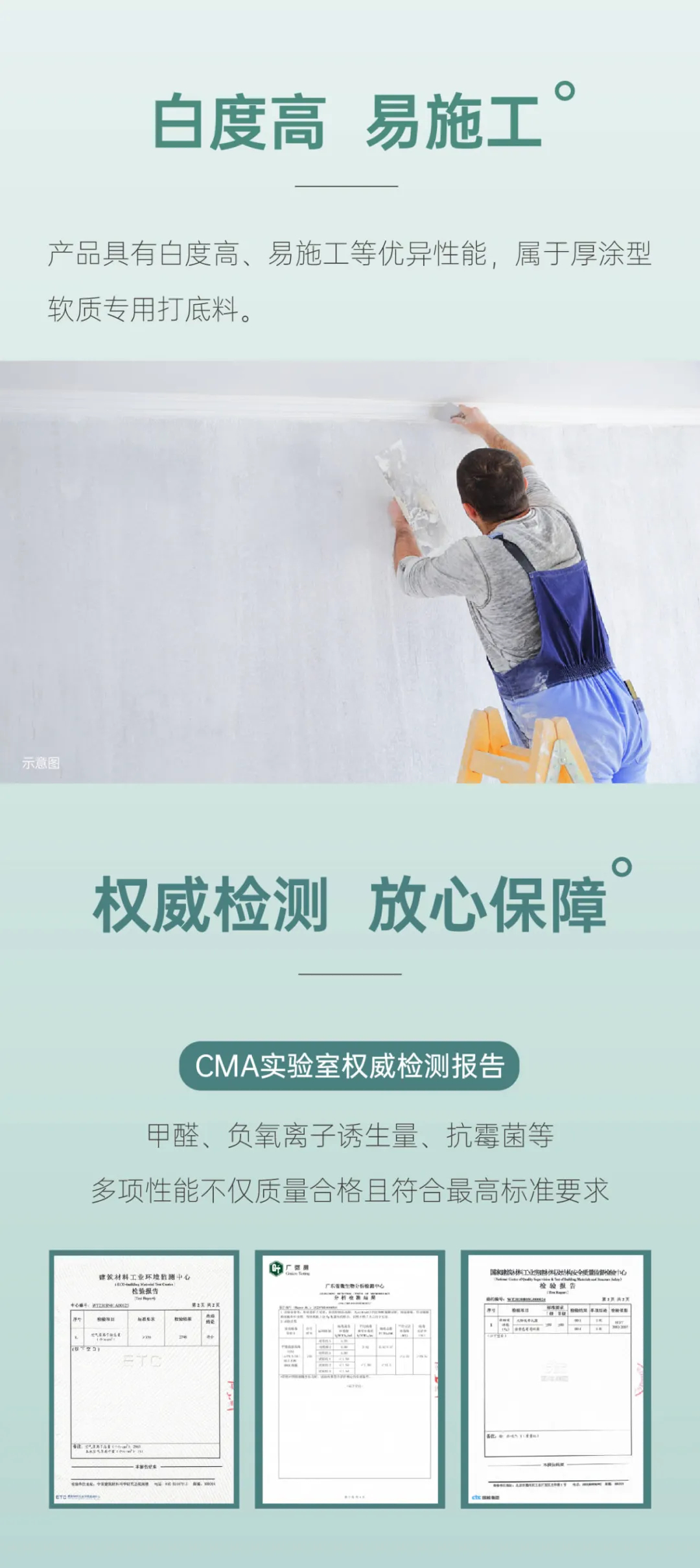 产品介绍:“聚合缘”GJD01型无机防霉打底料是一种纯无机专用打底涂料,其原材料全部来自于大自然的无机矿物质,产品自身不含甲醛、苯、VOC和重金属,具有超强的耐水、防霉、抑菌和隔热隔噪、防火阻燃功能。该产品白度高、易施工,属于厚涂型软质专用打底料。适用范围:对耐久性和防霉性要求较