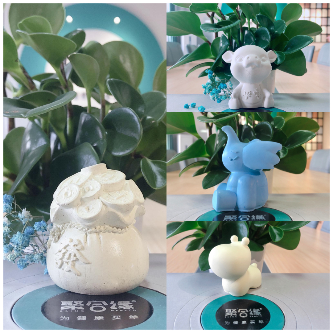 ◎“聚合缘”生态负氧离子工艺品是基于“聚合缘”0醛壁材基础之上加入特殊天然材料纯手工加工制成。不仅造型多样、色彩多变、美观漂亮,可以起到装饰作用,还能够持续释放负氧离子、分解甲醛、祛除异味、沉降PM2.5等,可持久高效的改善室内、车内的空气质量。目前开发的生态负氧离子工艺品有:十二生肖茶宠摆件系列、可爱卡通造型摆件系列、健康环保壁画系列、特色多边形花盆系列、特色多边形烟灰缸系列。